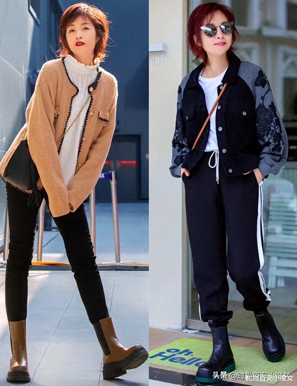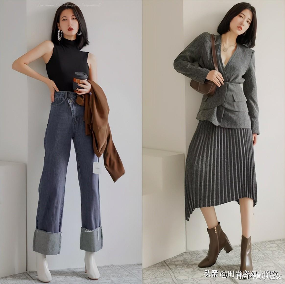 例如,选择宽松的长裤搭配修身的奶奶靴,利用裤腿宽松和靴筒紧身的对比,能够展现出更纤细的小腿线条,同时掩盖大腿的赘肉。相较于穿紧身打底裤,这样的搭配更适合腿部较粗的女性。