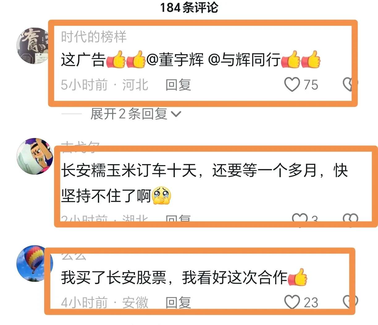 网友们对宇辉和长安的合作普遍表示支持,这样的国货都来找宇辉,这是我们都愿意看到的!