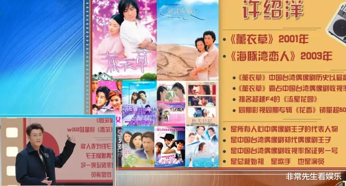 当许绍洋对着镜头用五分钟细数自己2001年《薰衣草》爆红、2003年《海豚湾恋人》登顶的光辉史时,弹幕已经有人忍不住吐槽:“哥,你知不知道现在选秀练习生做自我介绍都控制在30秒内?”