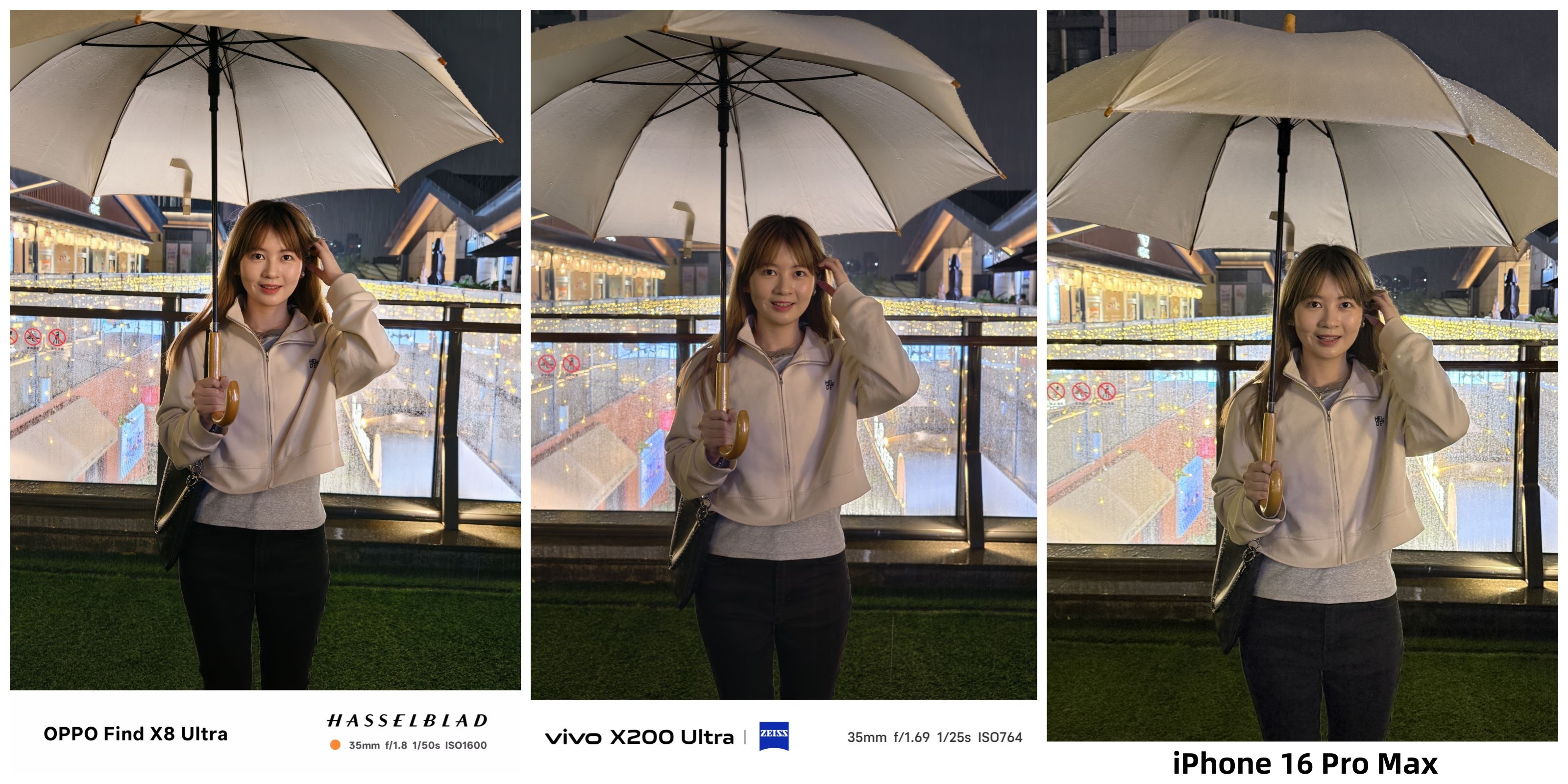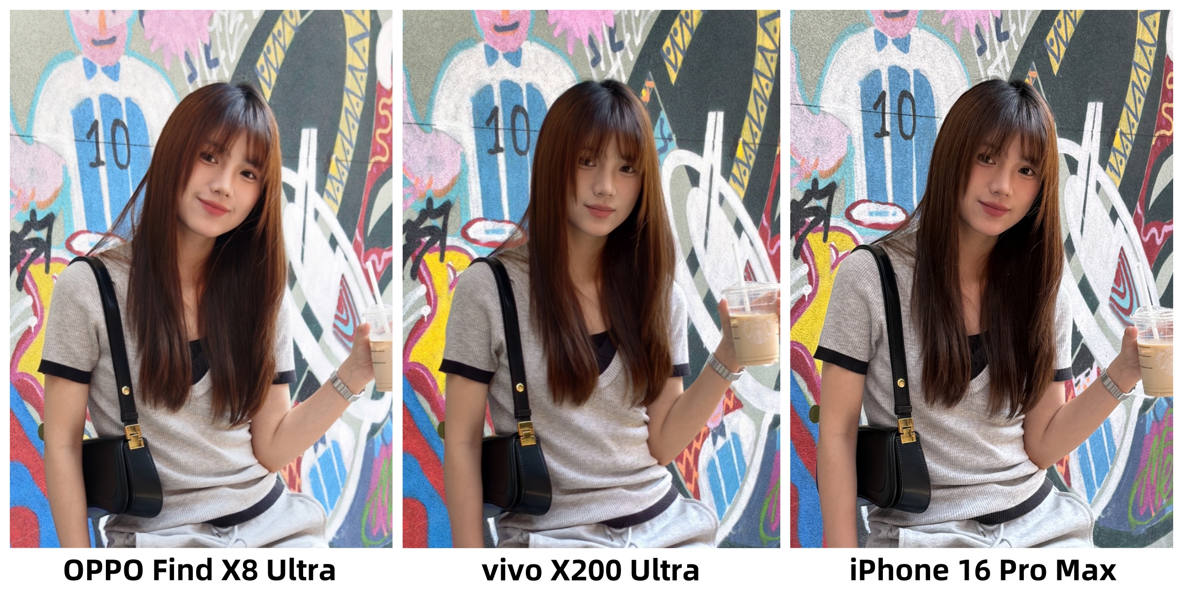 vivo X200 Ultra有蔡司算法撑腰,色彩真实但偶尔肤色偏冷白,AI磨皮一不小心就假面;iPhone 16 Pro Max更惨,祖传“僵尸白”+锐化过度,发丝边缘像抠图,直出照片不修根本没法看!