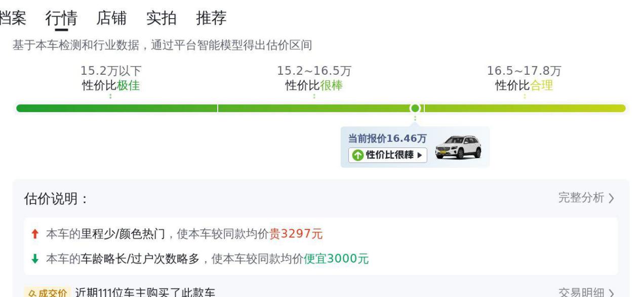 最后,让我们用一些数据来说话。根据权威机构的数据,同级别车型的平均二手车价格为15万元左右。而这辆奔驰GLB,价格略高于平均水平,这说明,它的品牌溢价确实比较高。