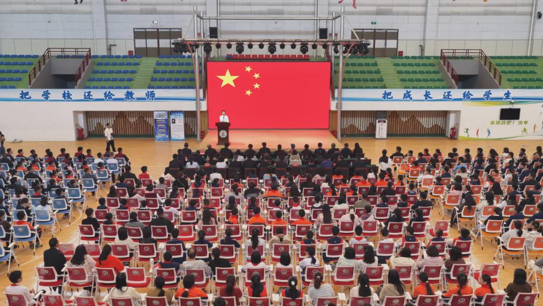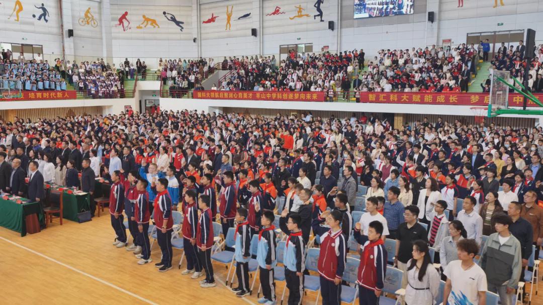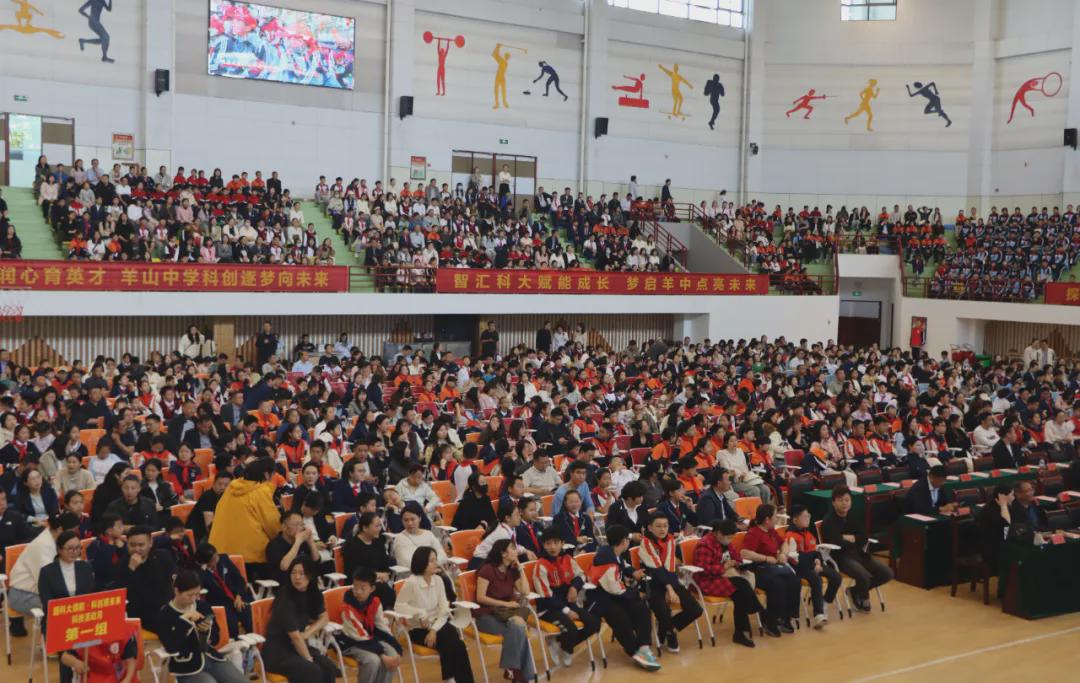 春光正盛,科创当时。自2025年6月信阳市羊山中学与中国科学院大学共建“青少年科学素养培育基地”以来,学校持续深耕青少年科技教育,着力提升学生科学探索意识、培育科创兴趣。4月18日上午,信阳市羊山中学“国科大领航·科创育未来”科技活动月启动仪式在校本部体育馆隆重举行。中国科学院大学专家团队、信阳市教体局及羊山新区教体局相关负责同志、市直及羊山新区各中小学校长、家长及学生代表与羊山中学师生齐聚一堂,共同见证了一场充满未来感的科创盛宴,正式拉开了科技探索之旅。