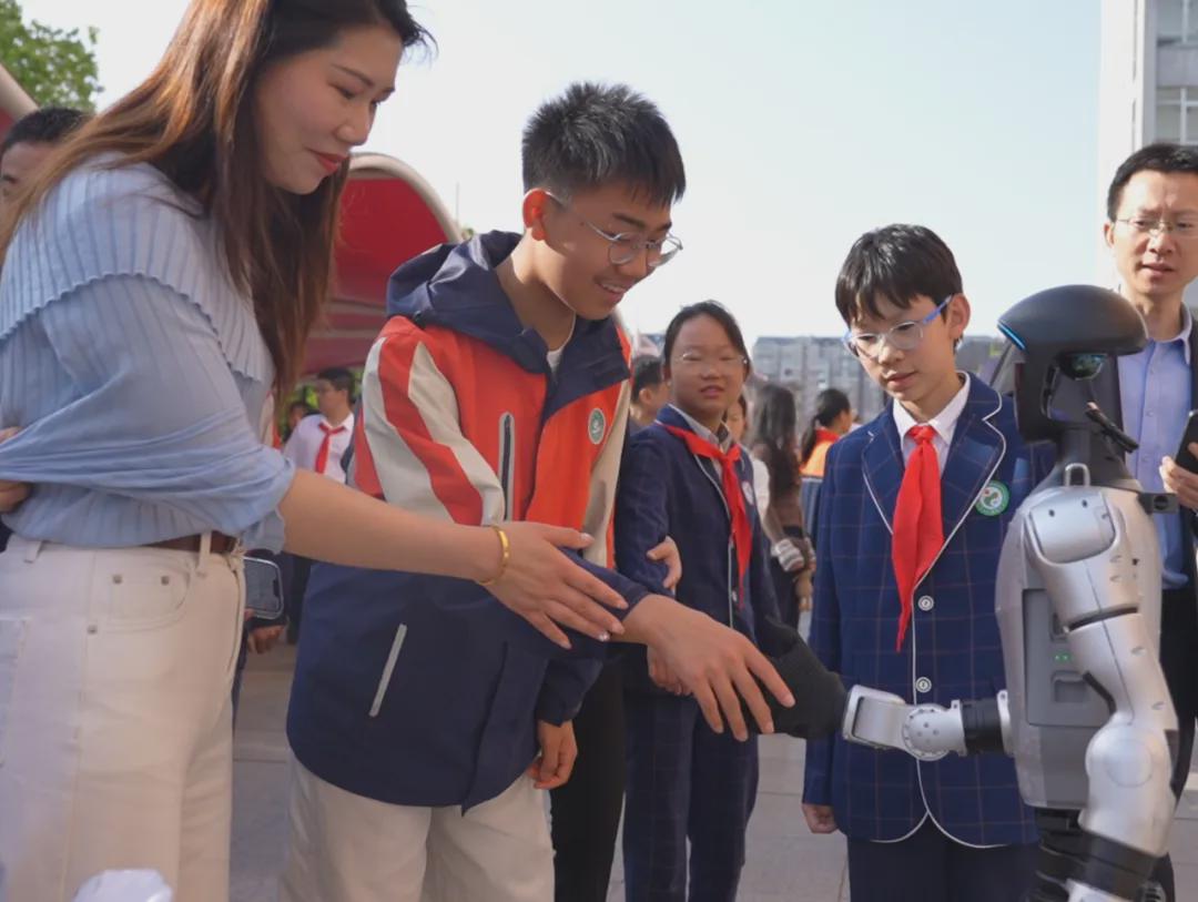 活动伊始,嘉宾与师生代表在志愿者的引导下,有序参观了学校科技互动实验设备。从图书阅览室到科创中心,再到实验楼前,一件件构思精巧、凝聚智慧的科技设备依次呈现,既展现了学校科创教育的蓬勃活力,也彰显了羊中学子勇于探索、敢于创新的精神风貌。