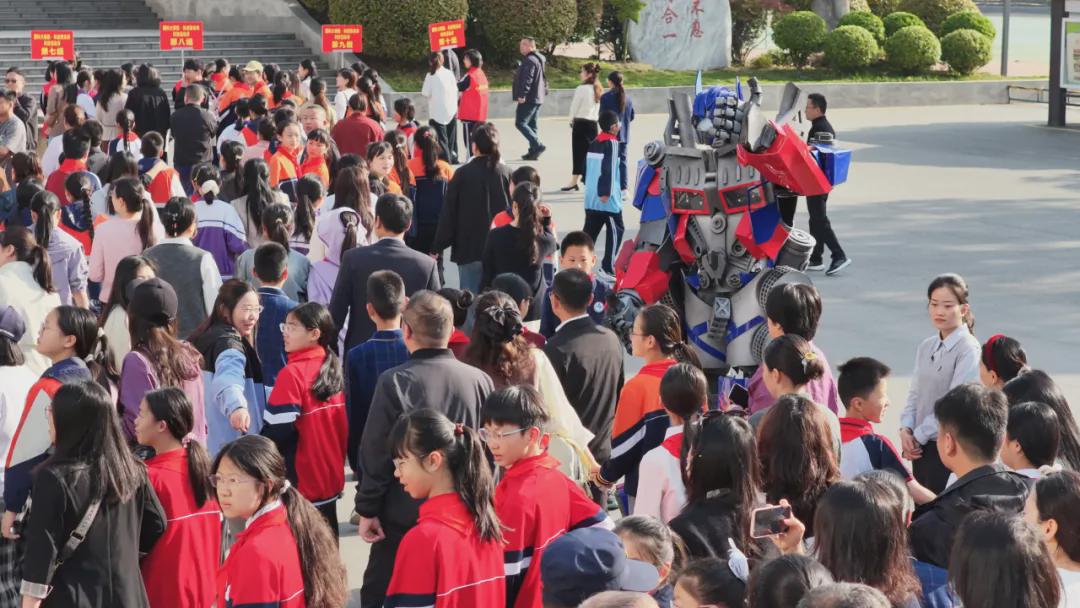 在热烈的氛围中,羊山中学党委书记黄洪新隆重宣布:“国科大领航·科创育未来”科技活动月正式启动!紧接着,未来感十足的机器人方阵闪亮登场,用精准而富有创意的表演,瞬间点燃全场,预示着一段奇妙的科技探索之旅已然开启。