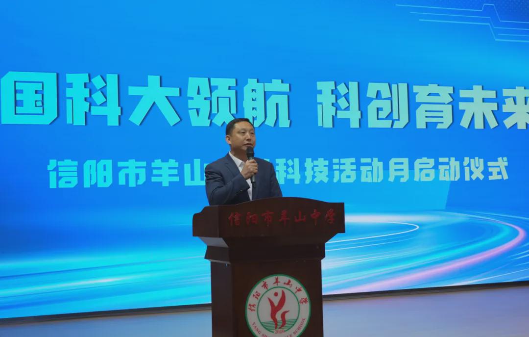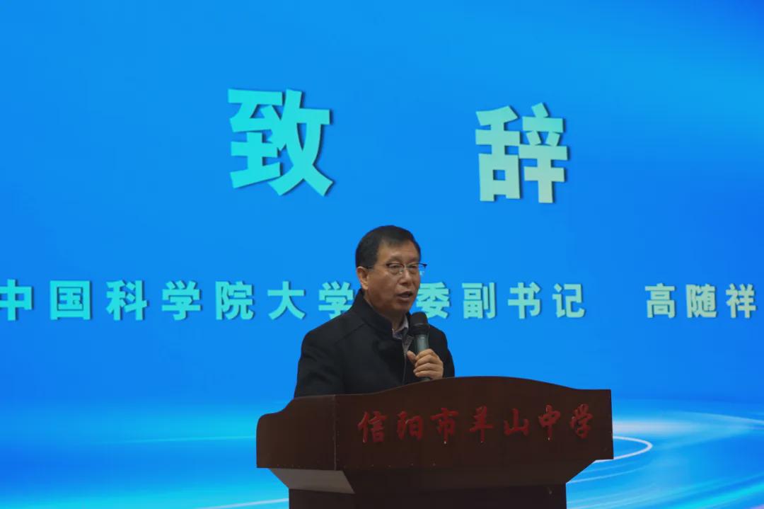 仪式在庄严的国歌声中拉开帷幕,羊山中学首先对莅临现场的各位领导、专家及嘉宾表示了最热烈的欢迎。随后,信阳市委教育工委副书记、市教体局党组成员高君行为活动致辞,对活动的举办给予了高度肯定与支持,随后,中国科学院大学党委副书记高随祥发表讲话,为羊山中学的科创教育带来了来自顶尖学府的视野与指导。