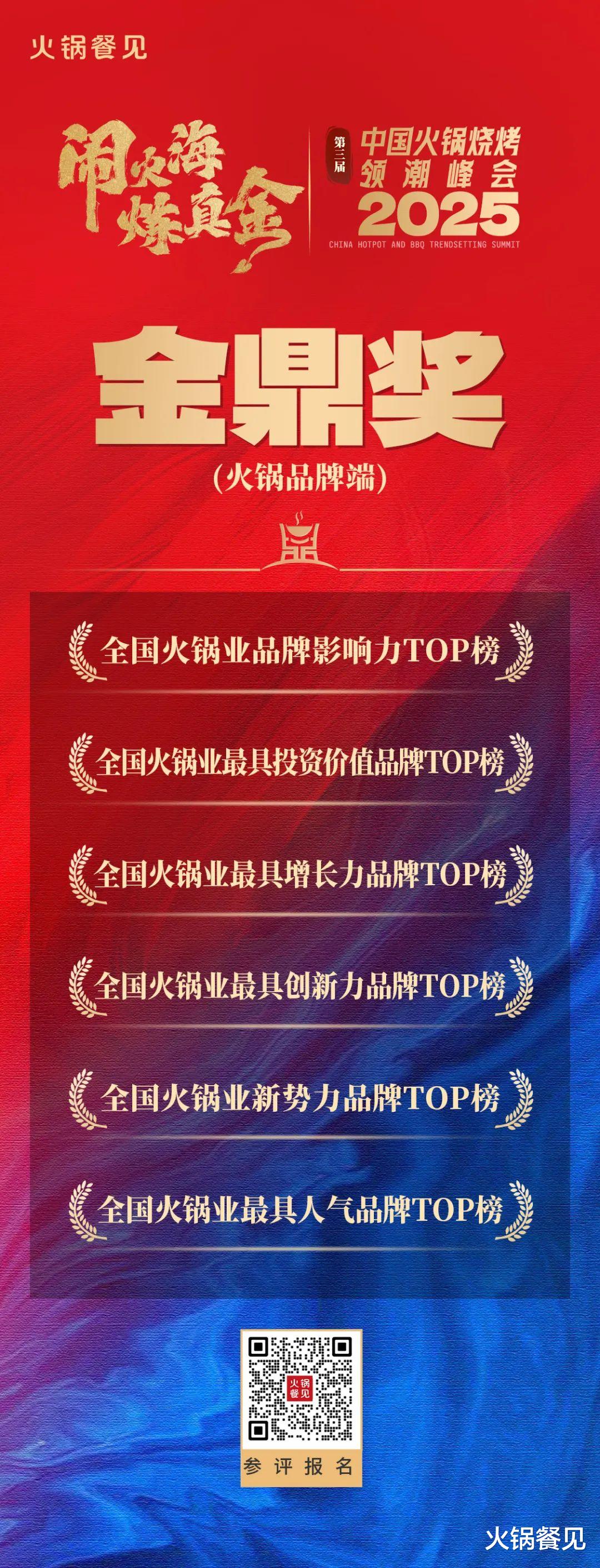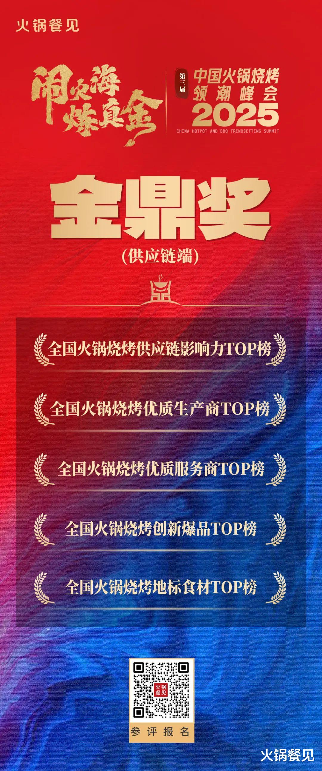 2025火锅烧烤金鼎奖如期而至,7月16日,2025中国火锅烧烤领潮峰会上,一起揭晓荣耀时刻!本次评定委员会由火锅餐见、餐见数据研究院、餐饮行业专家评审团组成,根据多维评选模型(品牌经营状况、行业美誉度、投资加盟、发展前景等)进行评选,并且本次评选也将严格按照权威、公平、公正、公开的原则进行评判。