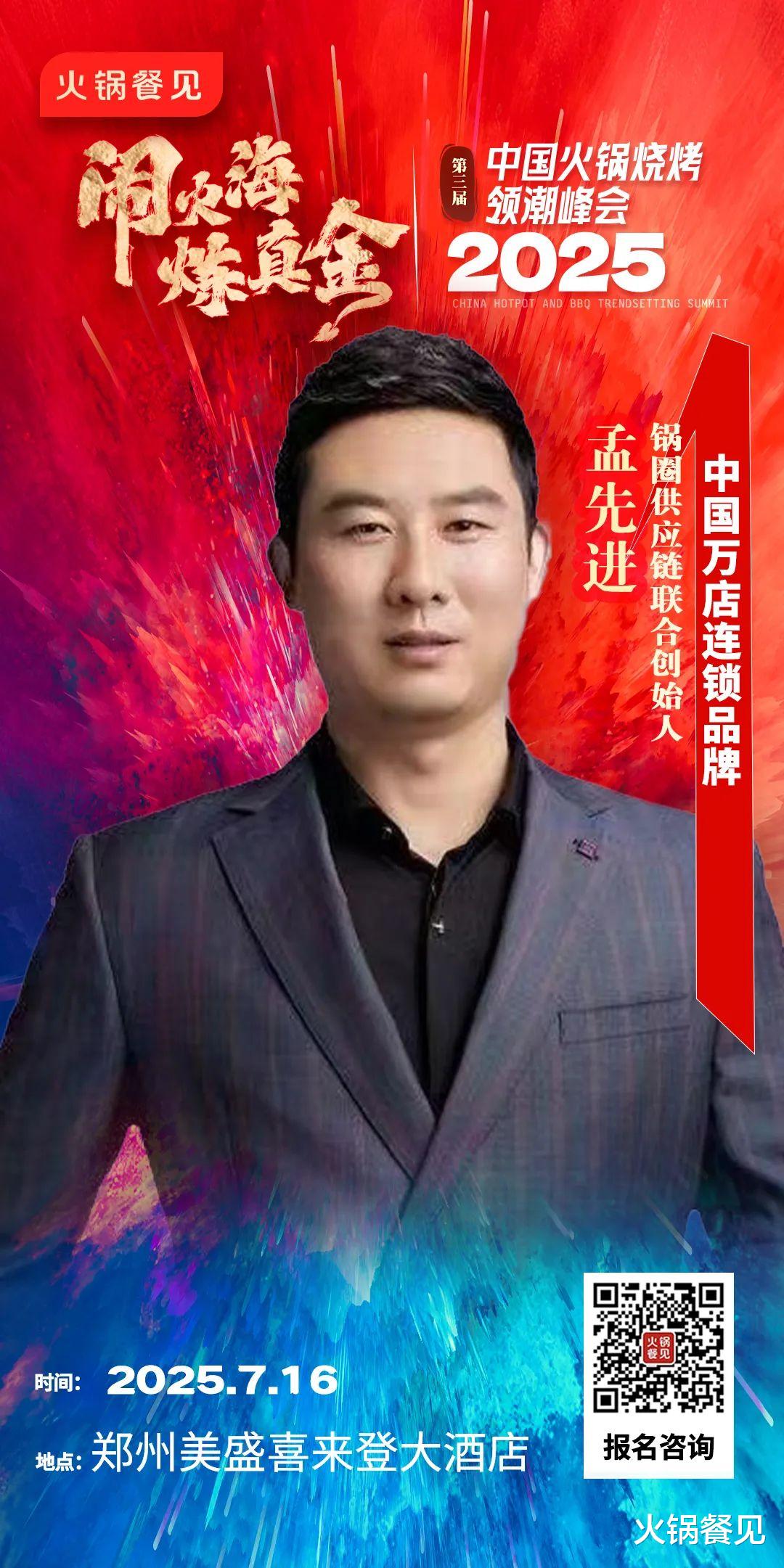 2025年7月16日,火锅餐见主办的“第三届中国火锅烧烤领潮峰会·闹火海 炼真金”将于郑州盛大举办。不惑创投创始合伙人李祝捷、锅圈供应链联合创始人孟先进、刘一手集团董事长刘梅、珮姐重庆火锅创始人颜冬生、刘炭长烤肉创始人刘畅等重磅嘉宾确认出席!购买早鸟票划到文末,先到先得。