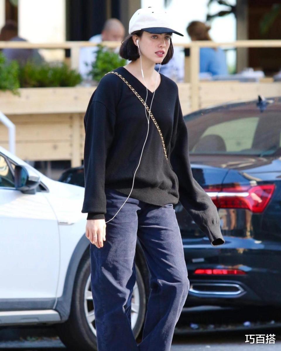首先,选择黑色毛衣一定要保证它有一定的露肤性,正常情况下,优先选择圆领或小V领款式效果最佳,利用露脖颈和锁骨的款式减少单品上身的沉闷压抑,选择全黑look也不影响鲜活形象。