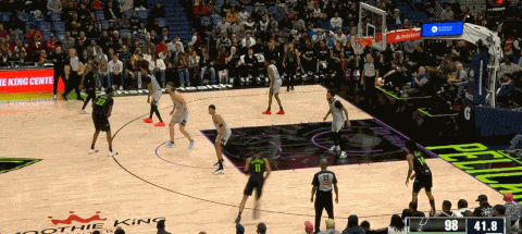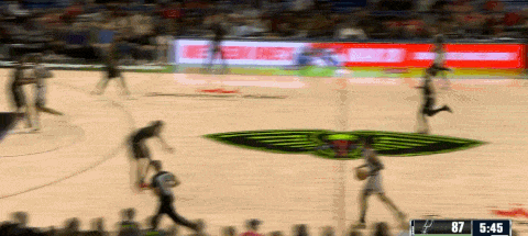 当奎因没能发现好的发牌机会并发动个人进攻时,他也保持着对队友位置的观察,这次面框突破奥利尼克时遭到了左右瓦塞尔和卡布的协防,皮维恰好利用这个机会底线backdoor cut切入,奎因再次送出击地传球助攻。
