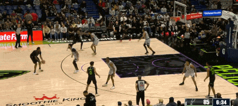奎因弧顶持球时,队友连续跑位到他身边搅动对手的防线,连续的切入清空突破空间后,墨菲完成和奎因的手递手突破上篮得分。