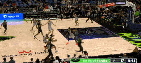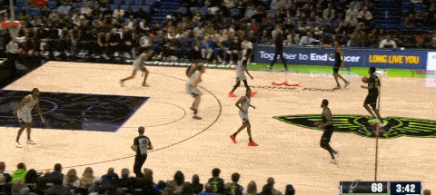球队非常依赖奎因在弧顶持球时打出的变化,这个回合以右侧Flare掩护+slip切入的战术发起,马刺虽然看出了鹈鹕的战术,却在沟通换防上出现问题,卡斯尔和瓦塞尔第一时间都跟防了切入的阿尔瓦拉多,奎因助攻空位的墨菲投中三分。