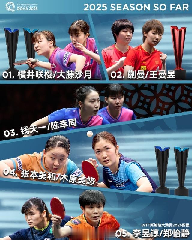 女双前5号种子为:1-横井咲樱/大藤沙月、2-蒯曼/王曼昱、3-钱天一/陈幸同、4-张本美和/木原美悠、5-李昱谆/郑怡静。