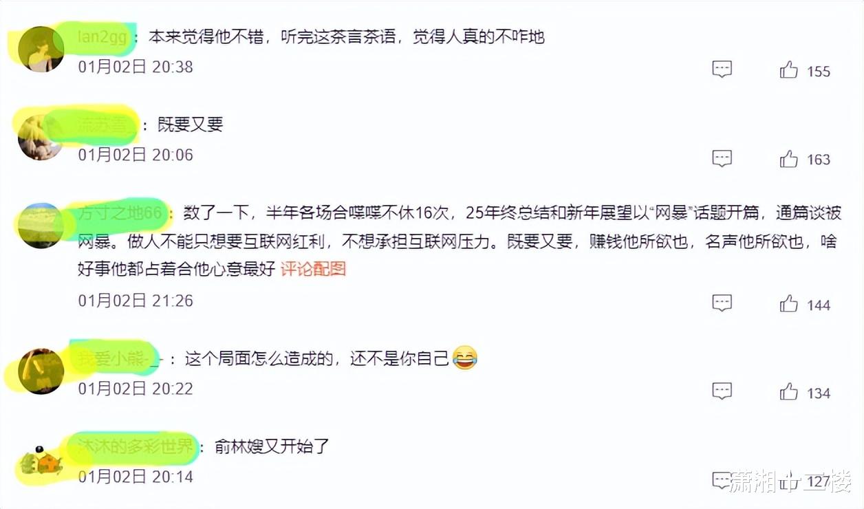黑红也是红,虽然年初俞老师才发了一篇长文,委屈地总结2024年“被网暴”,但转眼又找起了“现实暴”,被网友喷得体无完肤,看来俞老师的2025年,也是一个“被网暴”之年啊。
