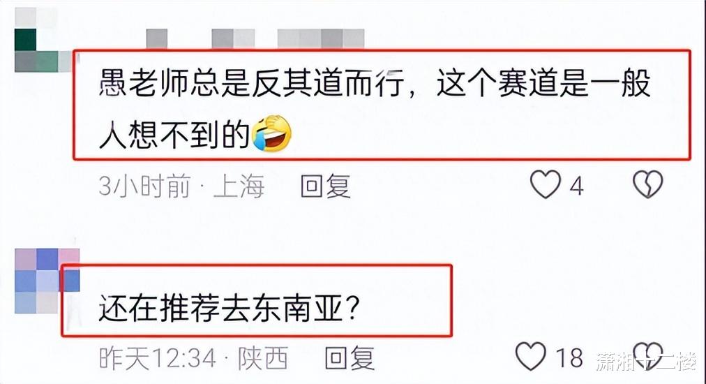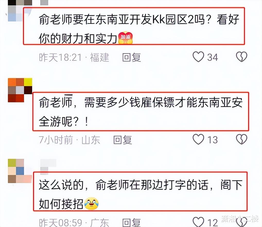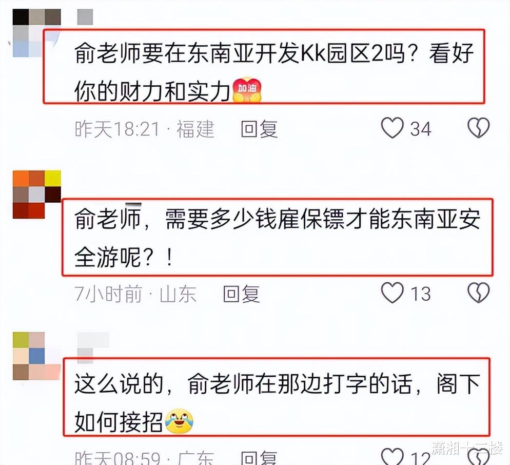 在电诈集团人口贩卖行为猖獗的当下,很多网友说话非常不客气:“俞老师这是要在东南亚开发KK园区吗?”