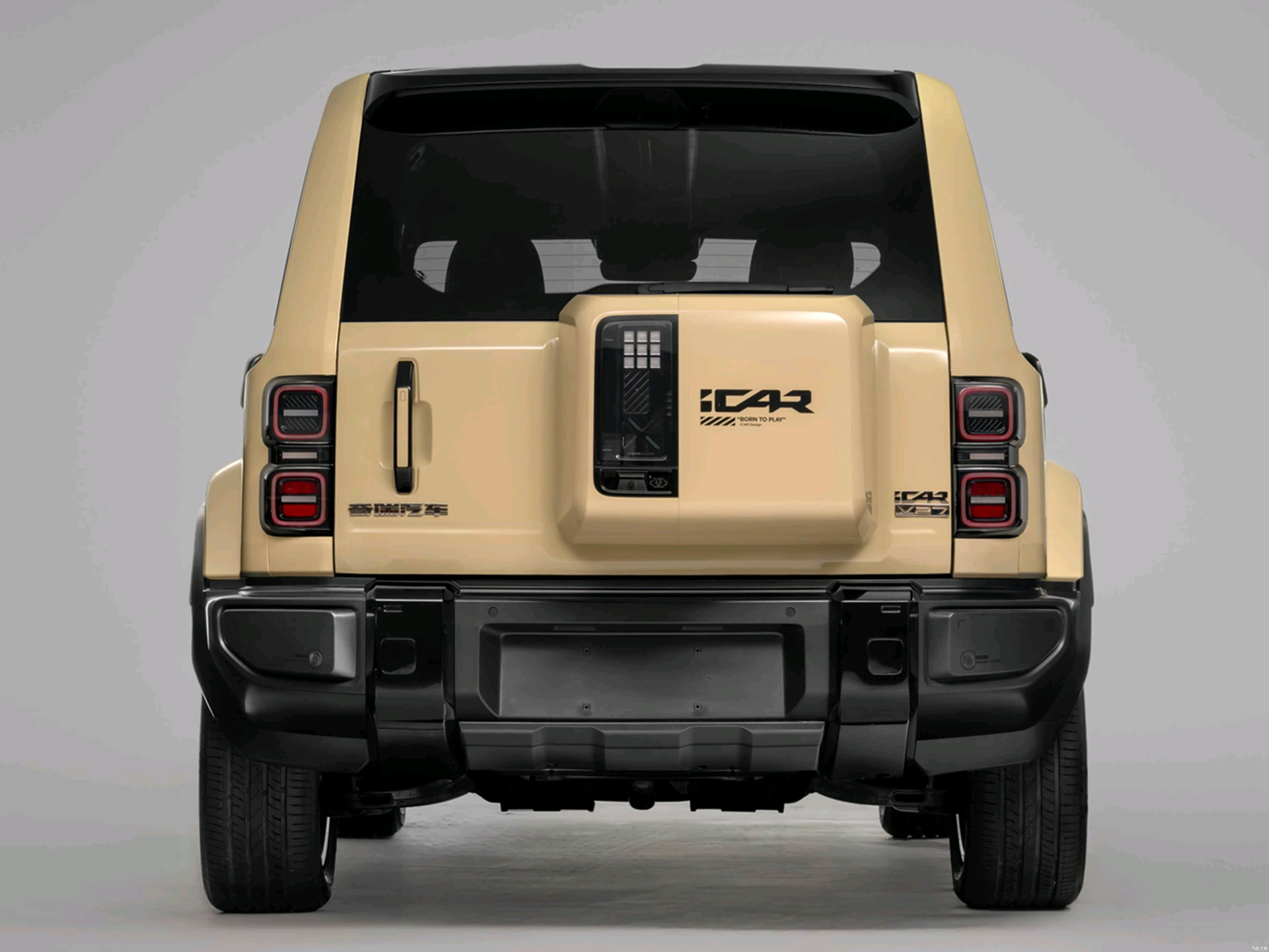 尾灯为竖向排列、侧开尾门、外挂式备胎和粗壮的后保险杠等,都是想带来视觉上的冲击力。