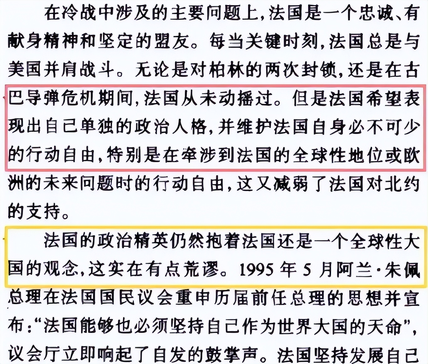 也就是说对于美国和苏联来言,谁也不敢把法国逼急了。