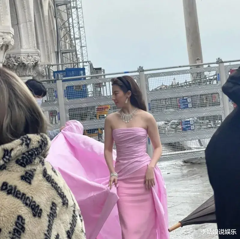 值得一提的是她的配饰搭配。为了平衡芭比粉的甜美,刘亦菲特意选择了银色钻石首饰点缀。放射状的项链设计与水滴形耳环相得益彰,既不会喧宾夺主,又恰到好处地中和了粉色的跳脱感,将整体造型的格调提升到了一个新的高度。