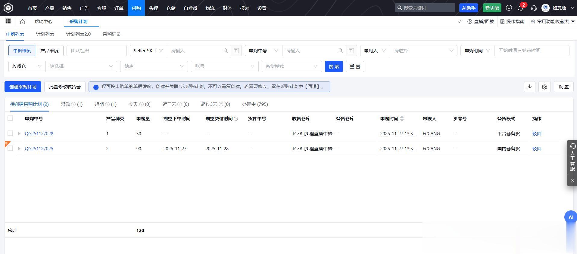 - 按需求数量多次创建采购单,便于匹配不同供应商或分批到货。