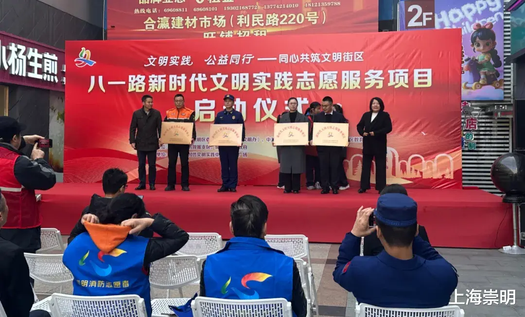 当天上午10点,启动仪式在萨克斯、笛子等悠扬的文艺表演中拉开序幕,暖场表演为现场增添了温馨氛围。随后进行的授牌环节中,崇明区消防救援支队、城桥镇相关社区居委等单位获颁志愿服务项目牌匾,标志着一批专业化志愿服务队伍正式“持证上岗”。