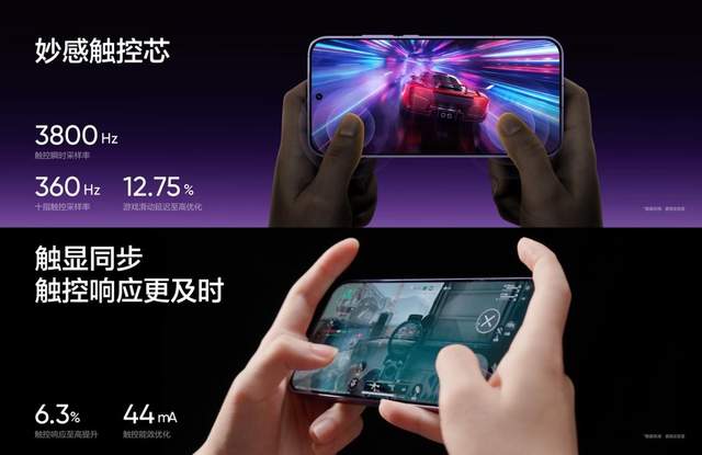 高刷新率的实际价值在于内容适配。真我Neo8宣布已适配超过30款热门手游的“原生165帧模式”,覆盖了FPS、MOBA、竞速、格斗、音游等主流游戏类型。相较于常见的120Hz屏幕,165Hz每秒可多渲染45帧画面,在快速移动和转向场景中,能显著减少拖影,带来更丝滑、更跟手的视觉体验。此外,新一代妙感触控芯片提供了高达3800Hz的瞬时触控采样率与十指360Hz的触控报点率,结合游戏触显同步技术,进一步降低了触控延迟。