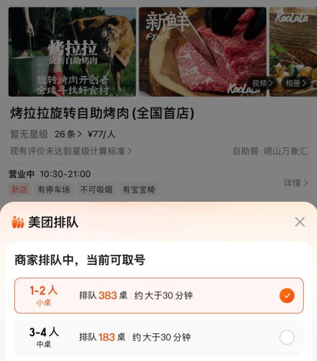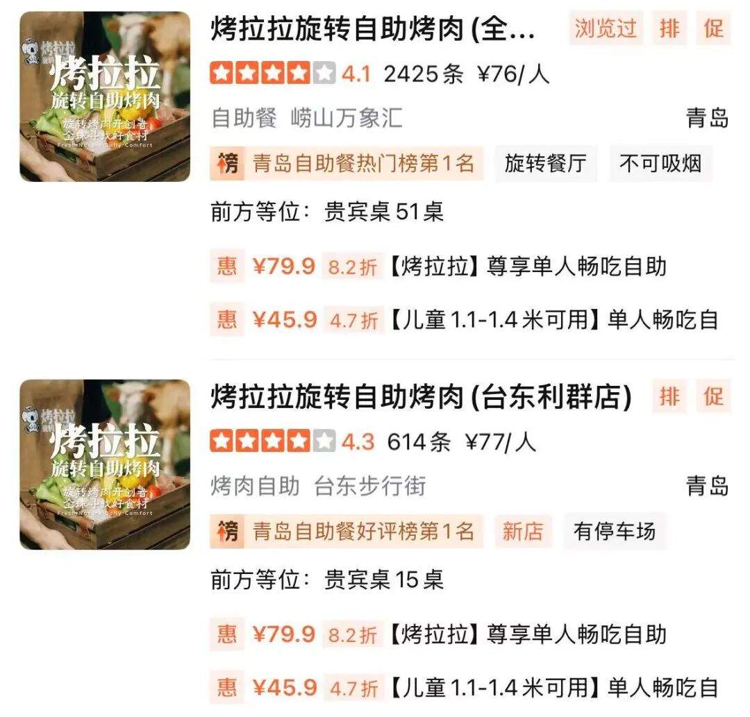 烤拉拉创立于2025年,客单价70多元,目前已开业的两家门店,青岛崂山万象汇店(全国首店)和台东利群店分别登顶当地“自助餐热门榜”和“自助餐好评榜”榜首,人气颇高。