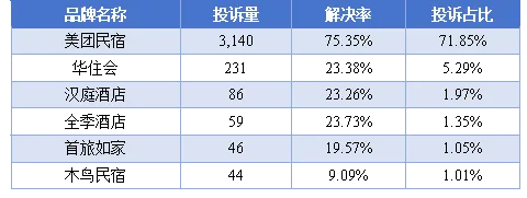 而较为知名的华住会和汉庭酒店的投诉解决率也仅为 23.38% 和 23.26%,反映出大部分酒店品牌在投诉处理效率和服务质量提升上仍有较大空间。