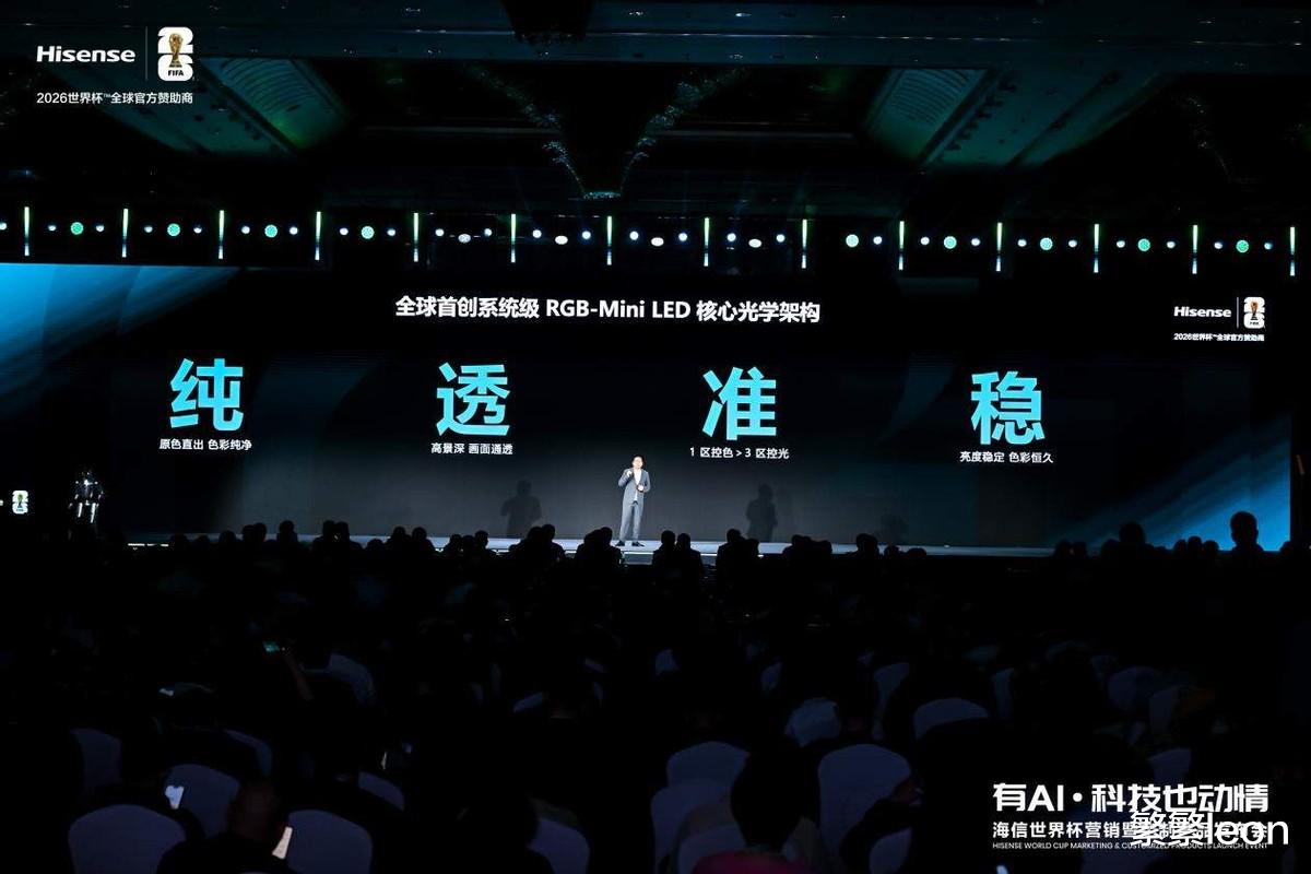 玲珑4芯真彩背光是UX2026款的技术核心。传统Mini LED电视采用红绿蓝三色背光,在480-520纳米波段存在“青色断层”,导致色彩还原不完整。海信创新性地加入天青色发光芯片,形成四芯架构,将色域提升至110% BT.2020(较QD-Mini LED提升10%、QD-OLED提升18%),色彩体积达行业最高100%,可多呈现1.2亿种极限色彩。配合43008个控色分区和10000尼特真彩亮度,每帧4K画面能多出近700个色彩细节,精准还原霞云、极光等复杂光影,实现“专业监视器级”视觉体验。