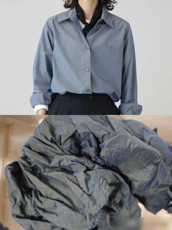 同样的衬衫,右边熨烫平整,结合白色下装,匹配度高,风格简约,立马就变得清爽时髦了很多,重拾了自己的优雅气质。