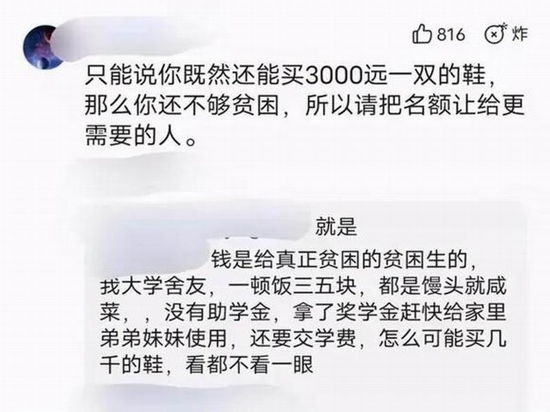 贫困生补助,当然不该是一场“比惨大赛”,但也不能变成“精致穷”的遮羞布。它存在的意义,是托住那些快要掉出教育轨道的孩子,而不是给他们买一双能踩进奢侈品店的鞋。一双三千块的鞋,或许能让你在朋友圈收获点赞,但它踩碎的,是无数像我那位室友一样、默默咬牙前行者的尊严。