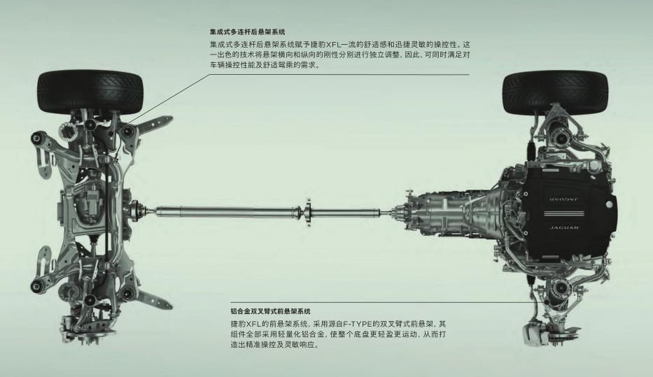 此外,在动态驾乘方面,捷豹XFL的底盘及悬架系统皆由轻量化铝材构建而成,减轻自重的同时还能带来优良的刚性和操控性。扭矩矢量分配系统可单独对前后轮内侧施加适当的制动,以此保持稳定的路面操控,带来如赛车般的灵敏性。