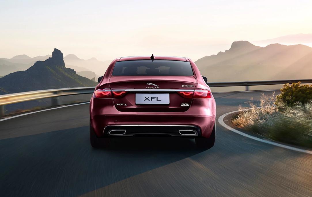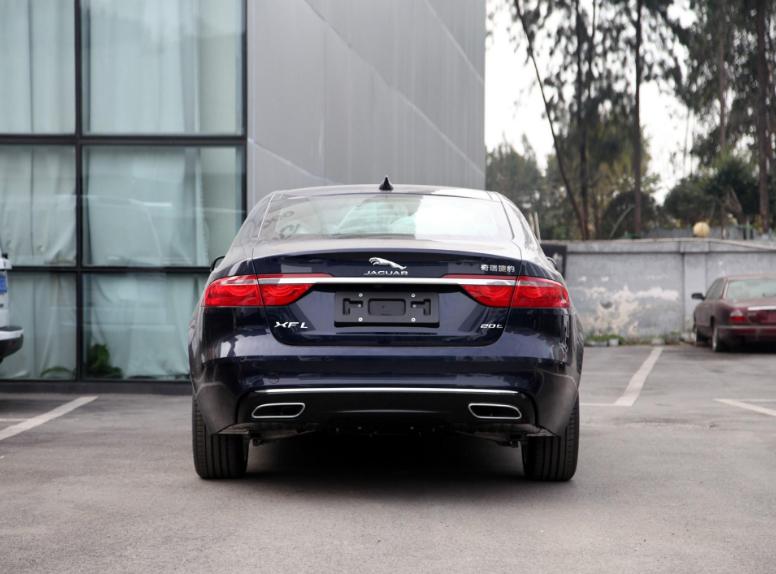 来到车身尾部,可以看到多层次的横向车身设计,微微上翘的小鸭尾,贯穿尾灯的镀铬以及微微前凸的下半部分车尾,这些设计风格既拉宽了捷豹XFL的车身视觉,也带来了动感、厚重的观感。
