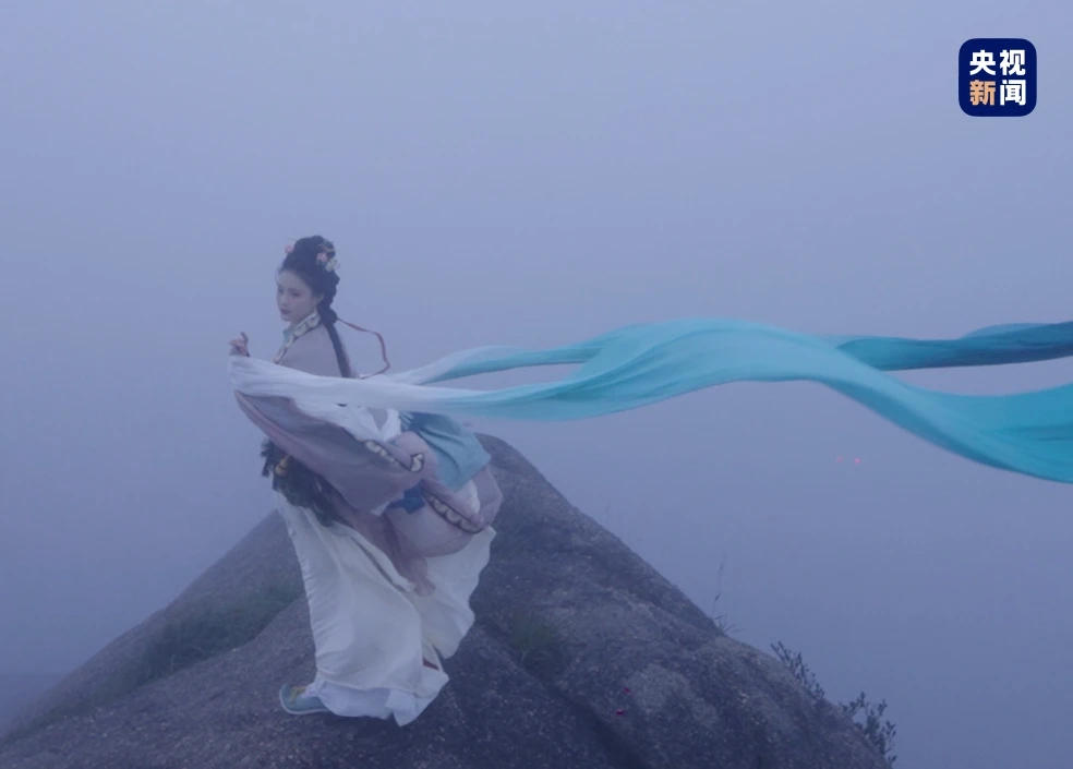 她拍视频很拼,为了拍“飞天仙女”腾云驾雾的场景,和团队背着器材爬上又高又陡的山。