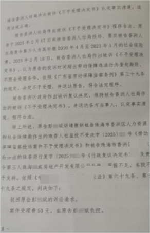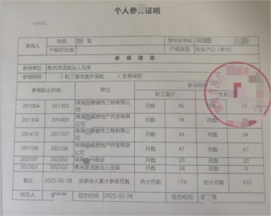 十五年履职,社保缴费藏“猫腻”据彭某斌描述,其2008年8月入职珠海某威房地产开发有限公司(以下简称“某威公司”)任水电工程师,2024年1月离职,在该公司及关联主体处工作近十五年。工作期间,某威公司2010年4月才为其缴纳社保,且始终按珠海市最低标准缴费,该情况彭某斌直至与该公司对簿公堂时才知晓。
