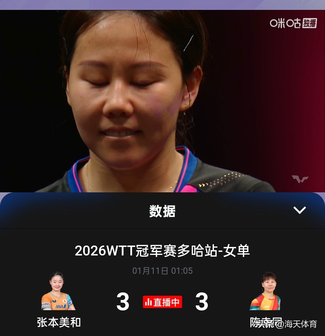 1月11日WTT多哈冠军赛,1/4决赛,陈幸同4-3逆转张本美和晋级女单四强,林昀儒4-0横扫松岛辉空晋级男单四强,日本遭遇2连败,中国两连胜!中国双杀日本!目前日本仅剩张本智和一个人晋级四强!