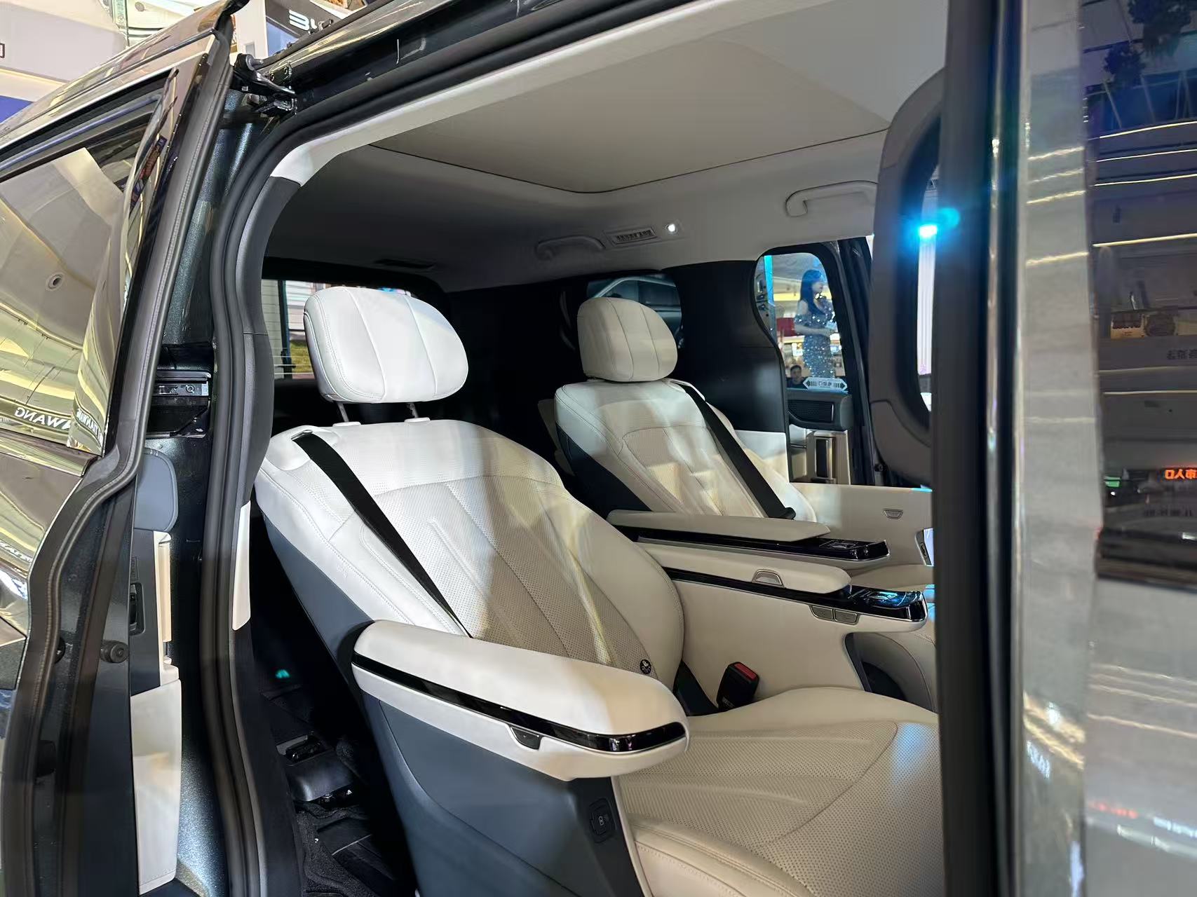 不同配置版本区分得很清晰,预算有限选100KM超越型,双侧电动滑门、电动尾门这些提升便利性的配置都有,中排座椅还有按摩功能,老人坐久了也舒服。要是经常长途自驾,218KM超越型的50W无线充电、7.2L冷暖冰箱就很实用,中排还有小桌板,孩子写作业或者办公都方便。顶配的218KM卓越型多了抬头显示、后排吸顶屏,长途出行孩子看动画也不无聊,副驾娱乐屏还能选装,家庭每个成员的需求都照顾到了。