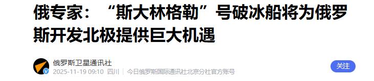 俄罗斯卫星通讯社——2025年11月19日——俄专家:“斯大林格勒”号破冰船将为俄罗斯开发北极提供巨大机遇