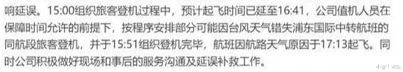 上海航空直言,飞机延误归咎于天气,对此给乘客添堵深感歉意。