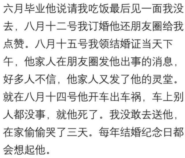 前任的什么消息最让你感到意外?网友:每到结婚纪念日都会想起他