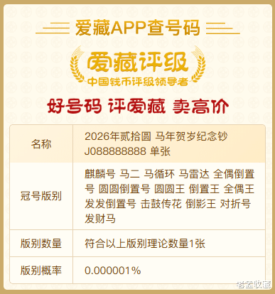 不过提醒一句,就算摸到靓号也别掉以轻心。裸钞不仅容易因品相争议影响交易,后续溢价空间也有限。老藏友都懂,想让马钞价值最大化,评级是必经之路,而今年爱藏评级新推出的黄金首日标,更是把收藏玩法和溢价潜力拉满了。