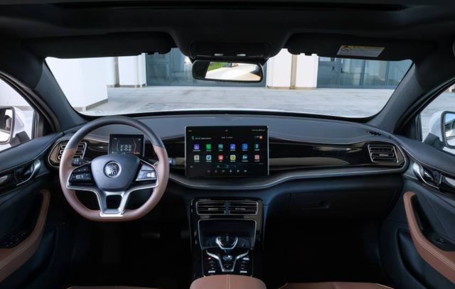 外观采家族龙颜设计,前脸配大尺寸六边形进气格栅,内嵌银色短饰条及“秦”字logo,辨识度高。内饰设计感强,仪表盘8.8英寸,中控12.8英寸悬浮屏,座椅一体式皮质打孔,质感舒适。