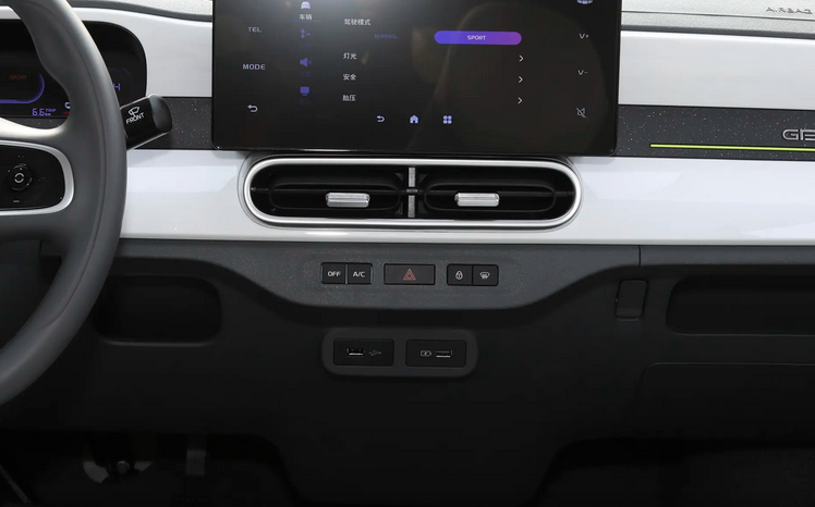 在2025款熊猫卡丁的中控屏下方,保留了部分常用的实体按键,这些实体按键的设计符合人体工程学原理,按键手感舒适,反馈清晰,驾驶员在驾驶过程中可以通过盲操作完成相关功能的调节,避免因操作中控屏而分散注意力,有效提升了驾驶安全性。此外,中控台左侧新增的手机支架接口采用标准螺纹设计,兼容性强,可适配各种类型的手机支架。这一贴心设计,为习惯使用手机导航的驾驶员提供了一定的便利,再也不用担心手机无处安放,或因支架不稳而影响导航体验。