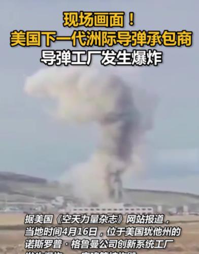 信息来源:观察者网--美国下一代洲际导弹承包商导弹工厂发生爆炸--2025-04-17