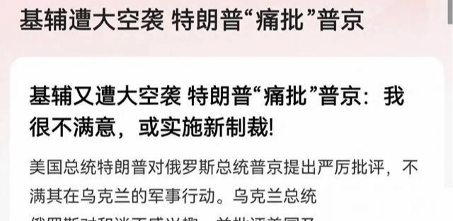 而在这场战争中,美国总统特朗普似乎也坐不住了,他对当前的局势发表了自己的看法,“我不懂为什么俄罗斯要这么做,他们正在和乌克兰谈判,为什么要用炸弹去轰首都呢?这根本就不合逻辑。”