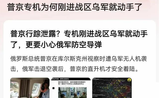 据俄方媒体透露,乌克兰对俄总统专机的袭击并非简单的突袭,背后可能存在严重的情报泄露问题,专机从莫斯科出发前往乌法,期间曾经停留过多个城市,但乌克兰无人机似乎只针对其进入战区后的时间段发起攻击,这让俄方不得不怀疑,是不是有人在暗中帮助乌克兰。