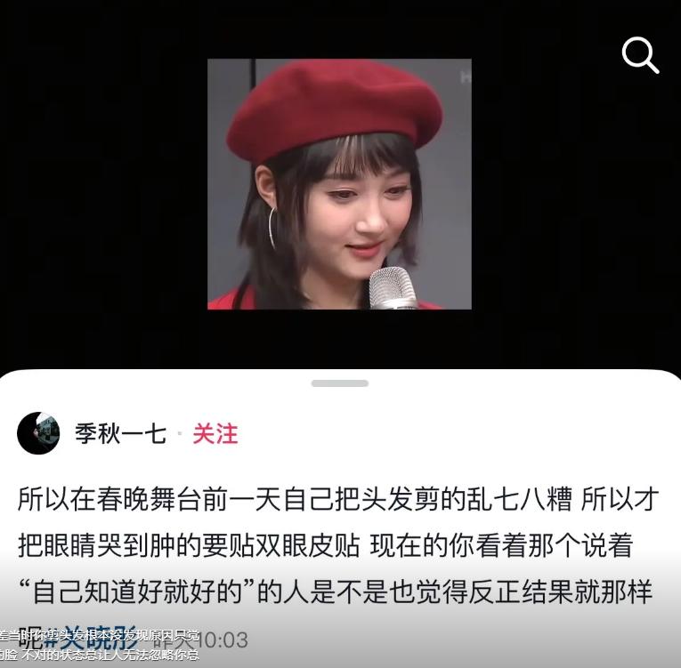当时在上节目之前,关晓彤不知为何突然剪了自己的长发,还有那双已经哭肿,靠着双眼皮贴的眼睛。