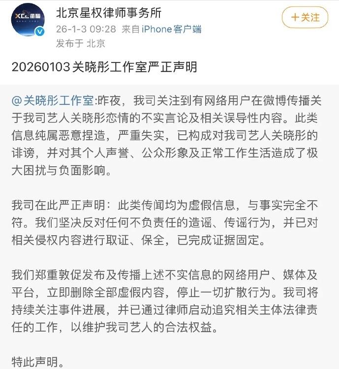 后来司晓迪也再次提出了这件事情,面对面对“关晓彤与王安宇热恋”的爆料,工作室以“诽谤”名义强硬回应,态度坚决、行动迅速。