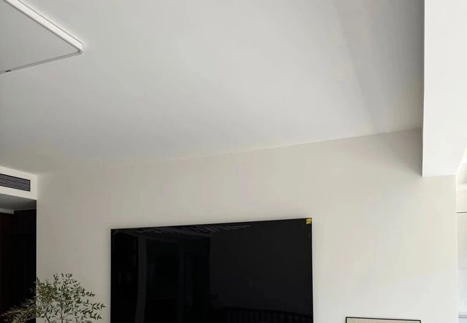 装修建议:原顶板不做吊顶,对油工师傅的手艺要求很高。刮完腻子以后,建议大家用红外线测一下阴角线,一定要保证墙面和顶板的阴角线几乎没有误差,这样做出来效果才好。