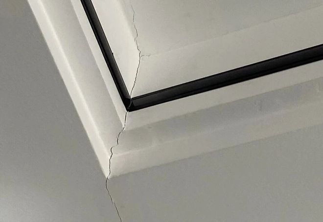 2、开裂的隐患。其实无论我们使用哪种吊顶,都要在顶板安装龙骨,目前流行的是轻钢龙骨。之后在表面贴石膏板。你会发现入住没多久就出现了裂缝,而且裂缝越来越多,修了也很难看。