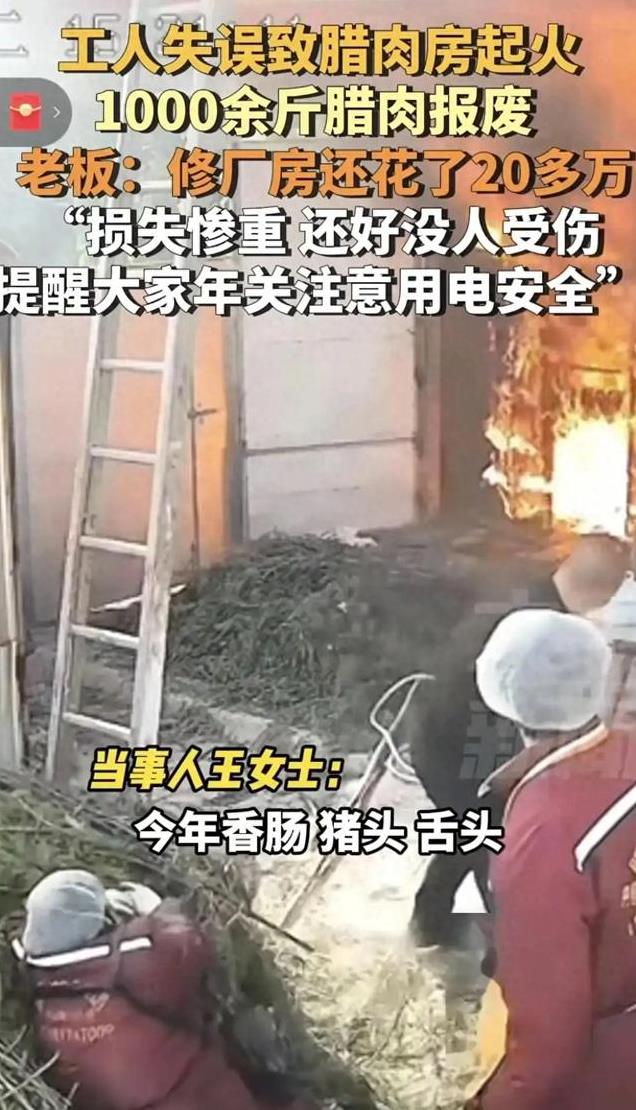 损失的腊味有香肠、猪头肉、猪舌头等等,总共1000多斤,损失金额四五万元。对于普通人来说,这是一笔不小的损失,但是王女士却没有放在心上,她甚至还调侃被烧焦的腊肉:“来给大家发福利了,这个腊肉我不要了,你们自己来抢吧!”