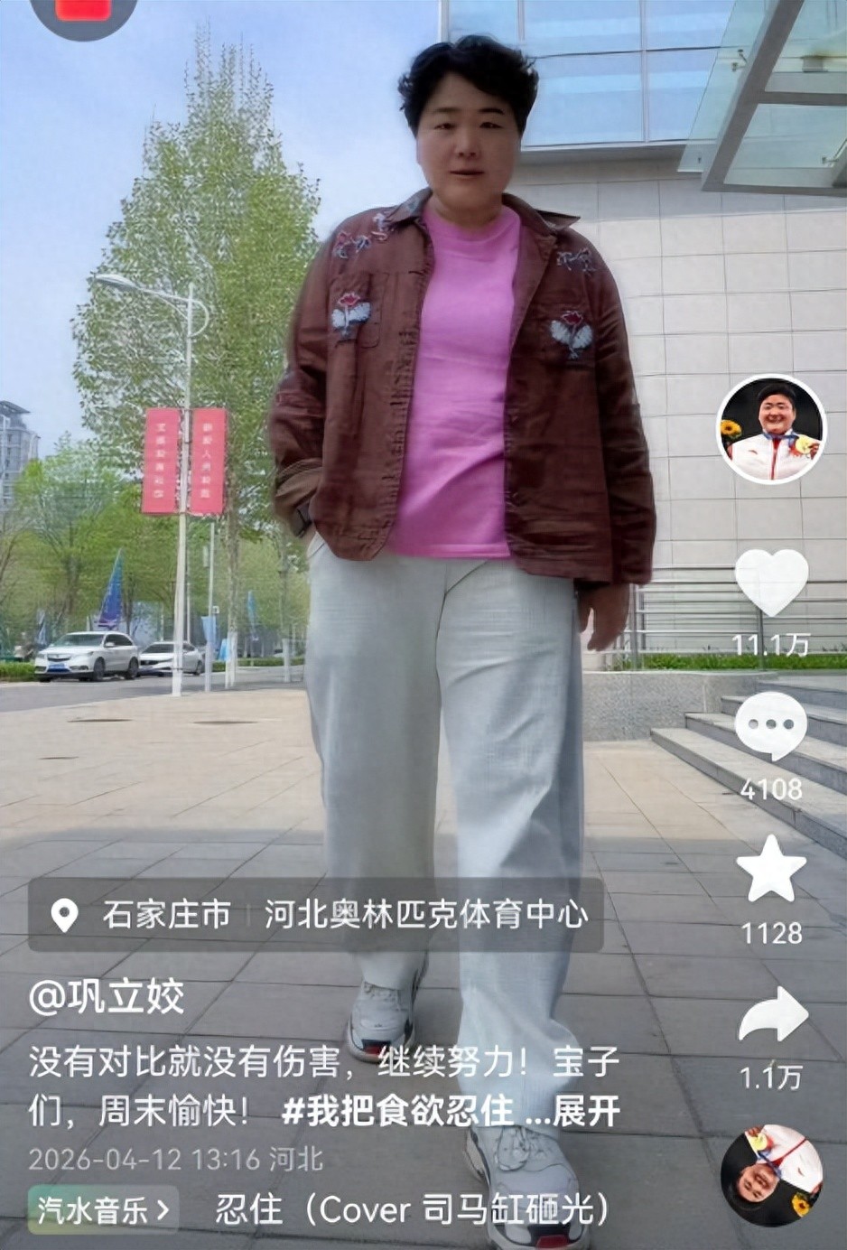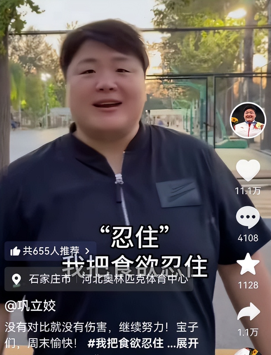 在她最新更新的视频里,巩立姣写配文:“没有对比就没有伤害,继续努力,宝子们,周末愉快。”视频中巩立姣晒出两段视频,目前的她较之前瘦了不少,很多网友直呼认不出来,巩立姣在评论区回应称:已经瘦了40斤,加油。